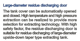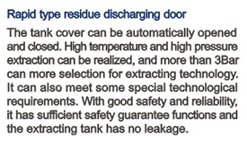 可全自動開閉罐蓋;可以實現(xiàn)高溫高壓提取,給提取工藝提供了更多的選擇,此出渣門適合大口徑倒錐型提取罐的出渣方式,安全系數(shù)高。