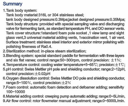 罐體結(jié)構(gòu):帶發(fā)酵罐專用取樣,放料閥,帶有標(biāo)準(zhǔn)溫度,PH,Do傳感器插口;